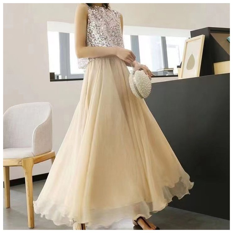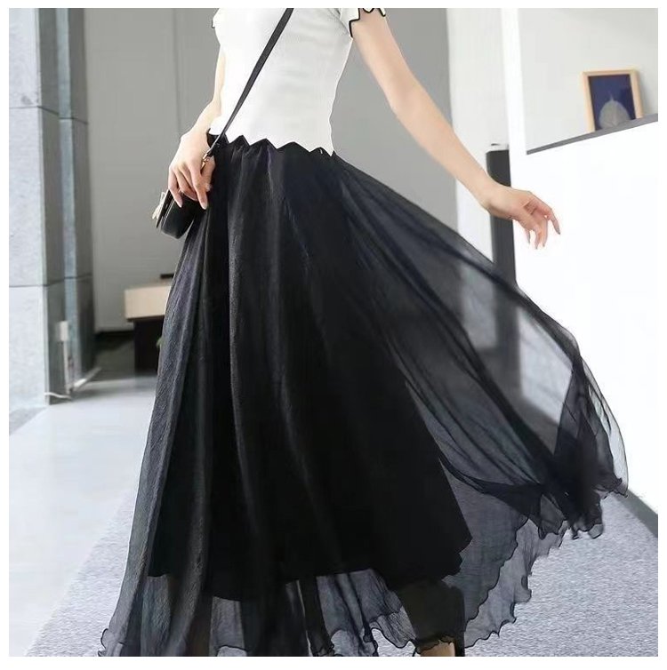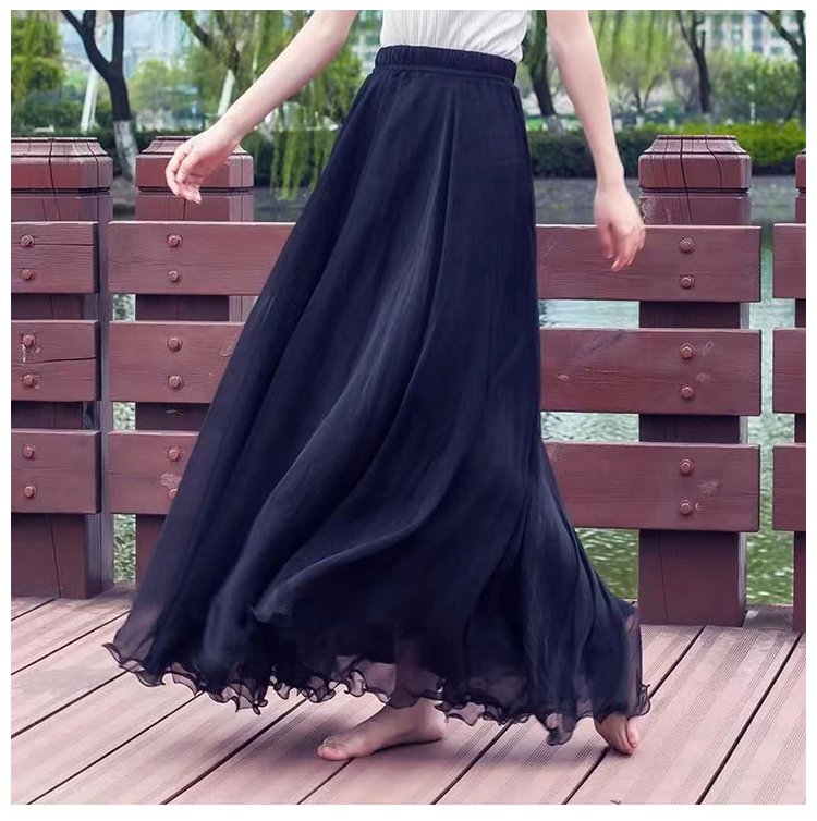 通勤やお出かけ用シフォンロングスカート