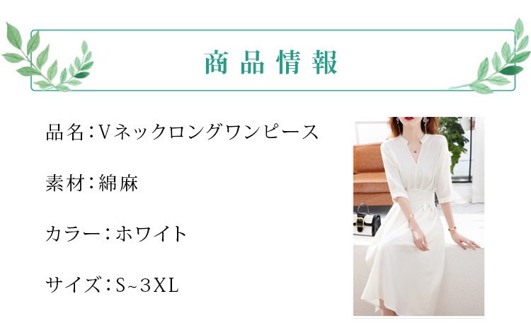 Vネックロングワンピース