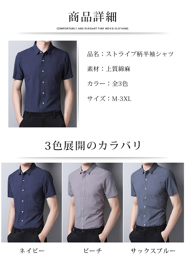 おしゃれなストライプ柄半袖シャツのバックスタイル
