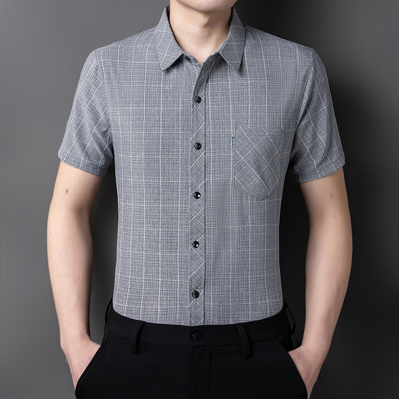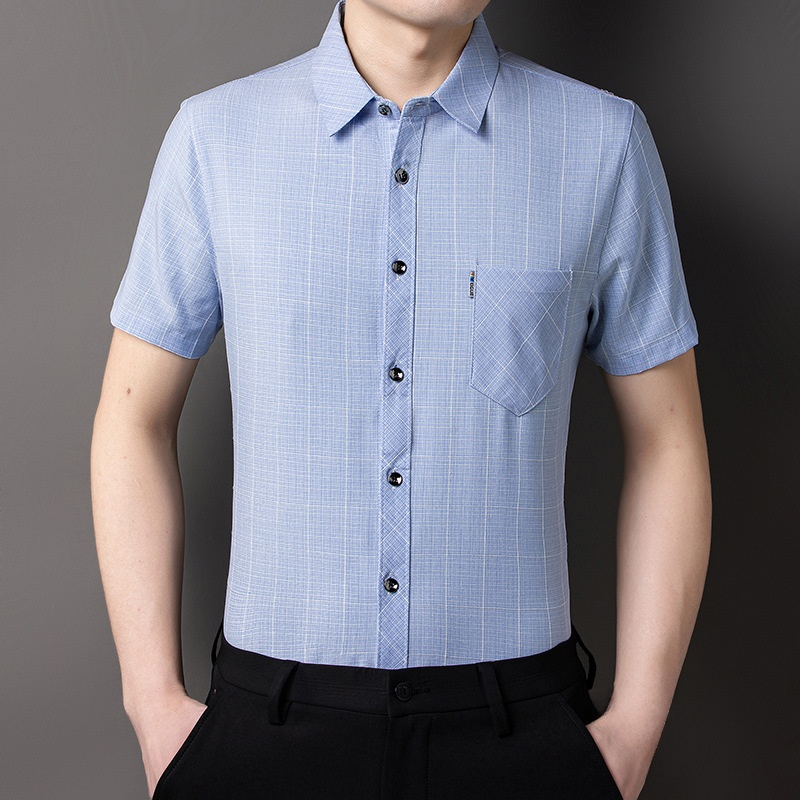 チェック柄綿麻メンズシャツ